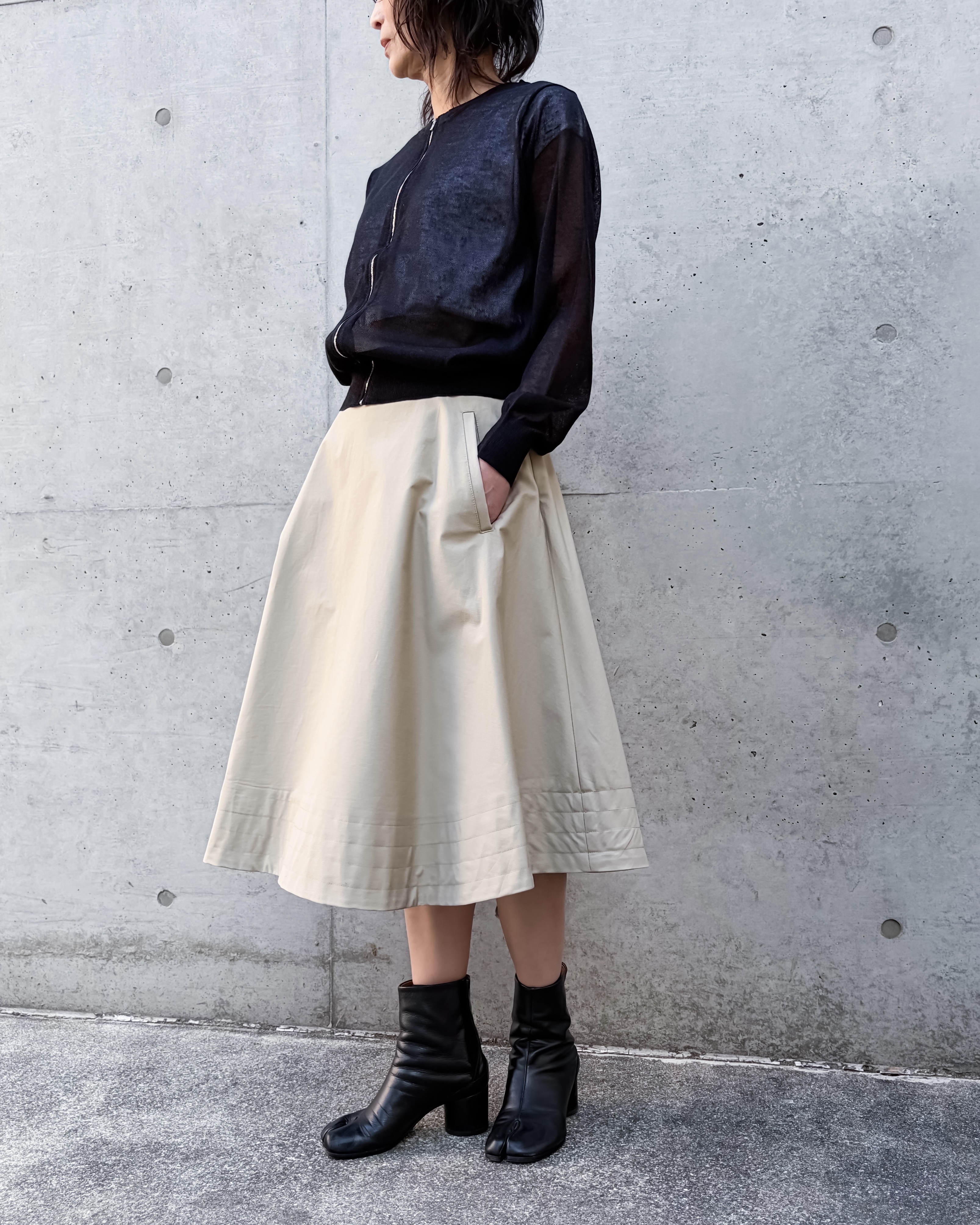 JIL SANDERのパタンナーを経験した女性モデリストの視点と長年信頼関係のあるディレクターの視点から、時代にフィットした手の届くラグジュアリーを提案。