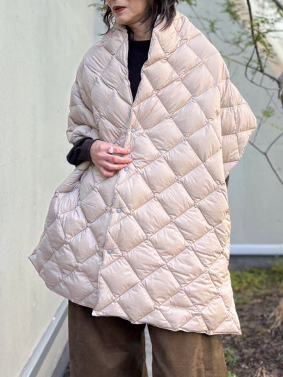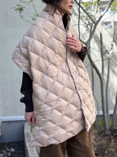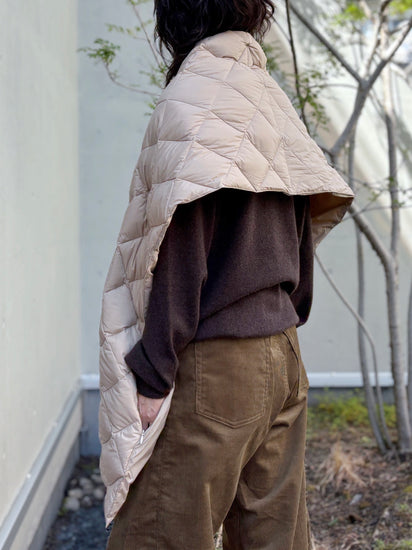 日本のインナーダウンブランド“TAION”とのコラボレーションにより生まれた、包み込むような暖かさとボリュームを兼ね備えたダウンストール。