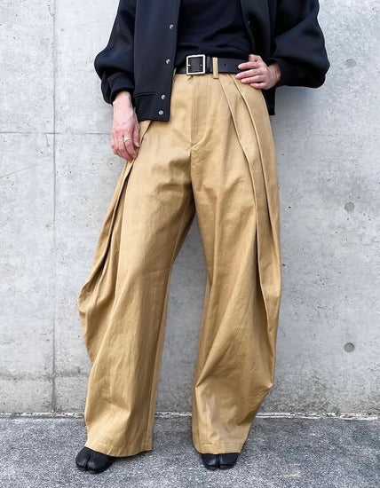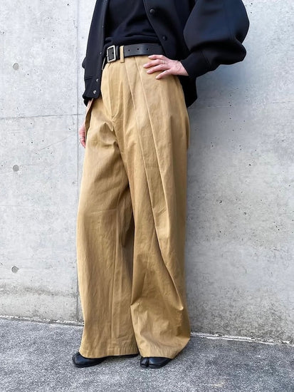 独特なタックのラインが引き立つデザインで裾にかけてテーパードになってま。
