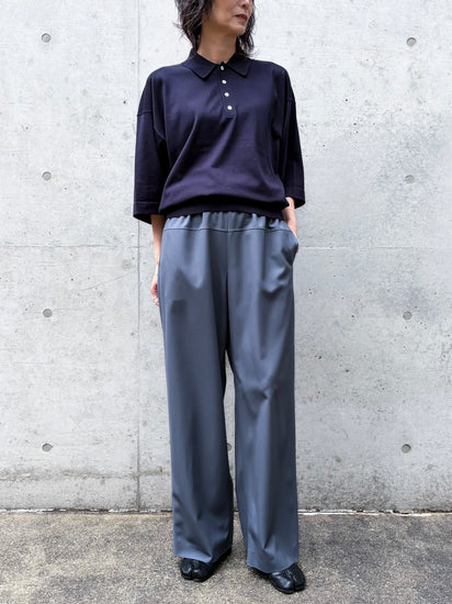 フロントはすっきりとした表情に整えつつ、バックにはさりげない立体感を持たせたハーフスリーブニット。