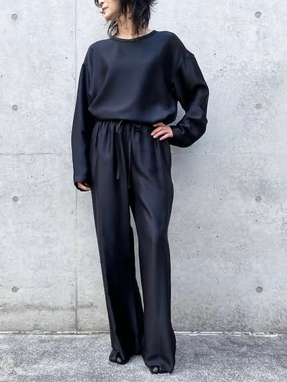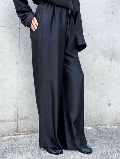 シルク素材の持つ心地よさがポイントのウェストギャザーパンツ