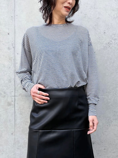 細かなボーダーラインがカジュアル過ぎず、大人のスタイルにも馴染む上品なデザインです。