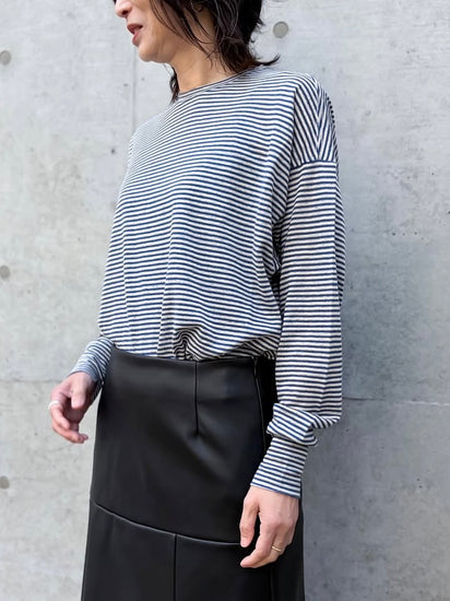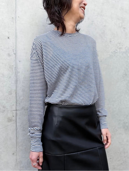 麻とコットンをブレンドした、軽やかなシアー感が魅力のボーダーロングスリーブTシャツ。