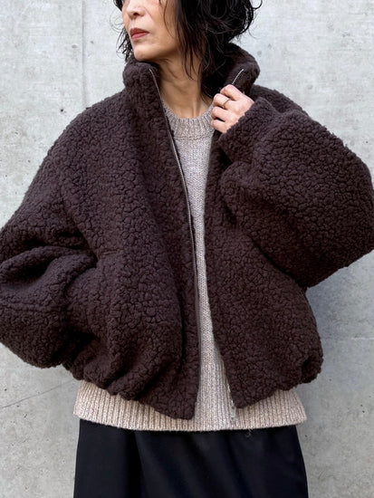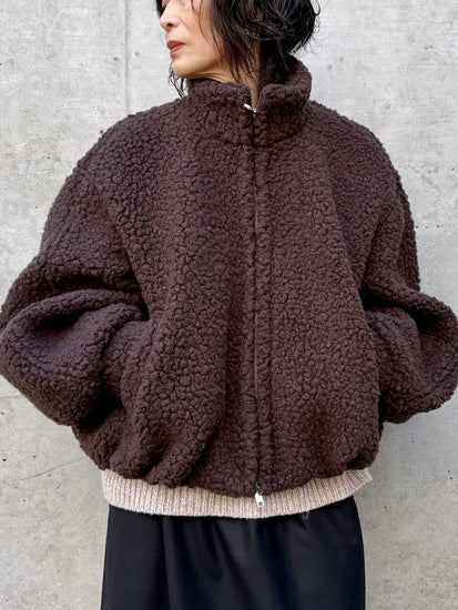 柔らかく弾力のあるボア素材はウール混素材を使用、見た目にも暖かく、防寒性も抜群。軽やかな着心地で、真冬のアウターとしても活躍します。