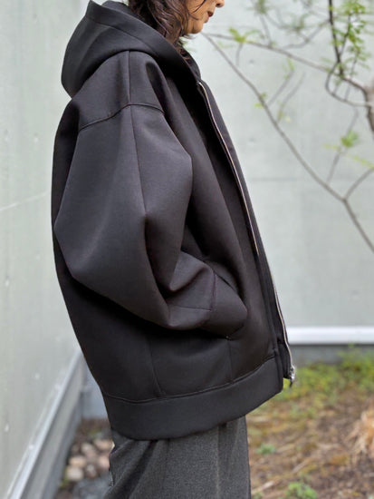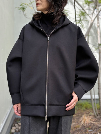 ウールライクな綾目素材に天竺カットソーを接着したボンディング素材を採用。表面は天然タッチで柔らかな印象ながら、ボンディングによって膨らみとハリ感を持たせ、CLANEらしい構築的なフォルムを表現しました。