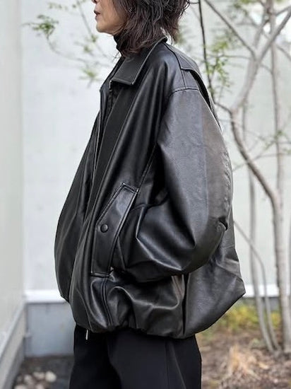 バルーンシルエットが特徴的なフェイクレザージャケット。