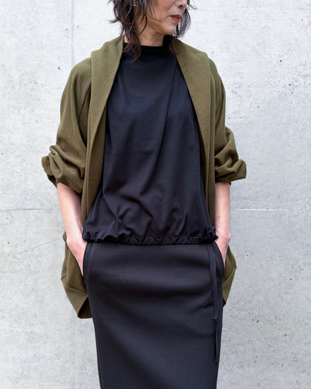 袖口と裾にはリブを配し、全体をやさしくまとめた静かな存在感のある一着です。