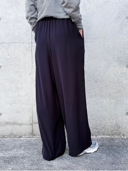 ワイドパンツの合わせやすさを持ち合わせ、少しだけテーパードしたシルエットは大人っぽく足が長くみえるように工夫しています。