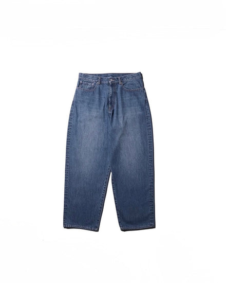スタンダードなファイブポケットジーンズをベースに、腰まわりに程よいボリュームを持たせ、裾に向かって緩やかにテーパードしたワイドシルエットが特徴です。
