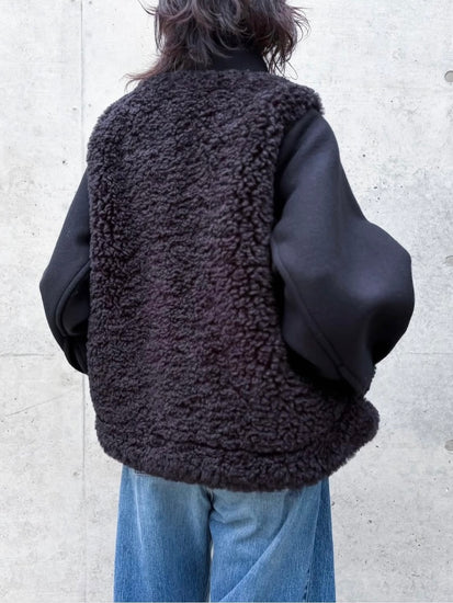 身頃にはポリエステルファー、全身にはダブルフェイスの起毛生地使用したダッフルジャケット。