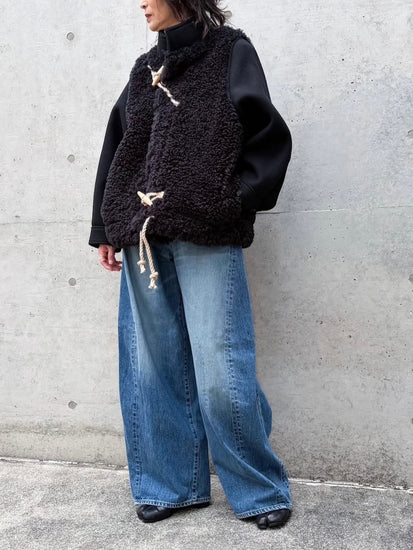 HYKE / DOUBLE FACE FAUX SHEARLING DUFFEL JACKET / BLACK / 17549
