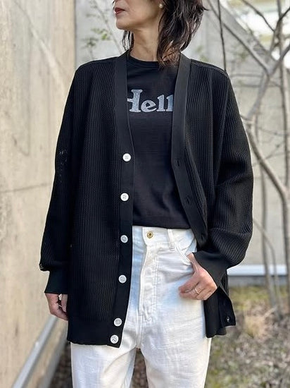 ルーズライクに着こなせる事からユニセックスアイテムとしても着用でき、上品な透け感は大人のカーディガンとしてマストハブアイテムに。