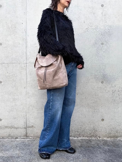 柔らかなスエードとリラックスしたシルエットで仕立てたドローストリング ホーボー スモールバッグ。