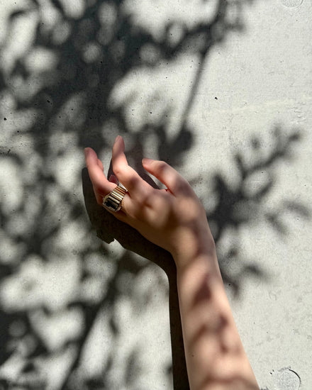 T80リングウォッチ」は、“時間をまとう”ことのできる指時計。バンドは指にはめるために設計されており、細かい線を施すヘアライン加工によって、上品な質感に仕上げている。「T80ギフトセット」と同様に、ゴールド仕上げのステンレススチールケースや、ニューメリックロゴを彷彿させる数字のディテールが採用されている。