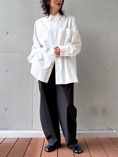 メンズライクなサイズ感でゆったりとしたシルエットが特徴的なシャツアイテム。