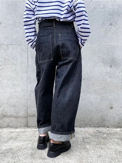 STUDIO NICHOLSON / CHALCO DENIM WIDE CROP PANT / WASHED BLACK