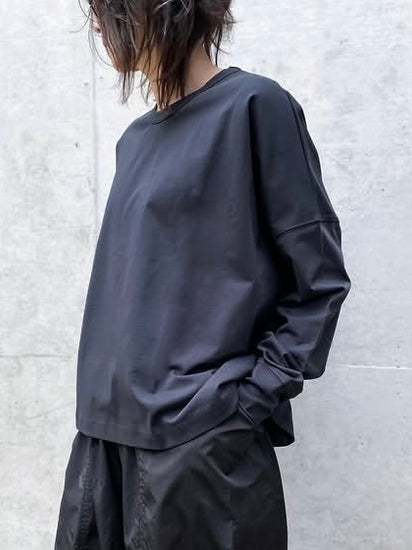 マーセライズド加工をした天竺のロングスリーブTシャツ。ワイドなシルエットが特徴的。