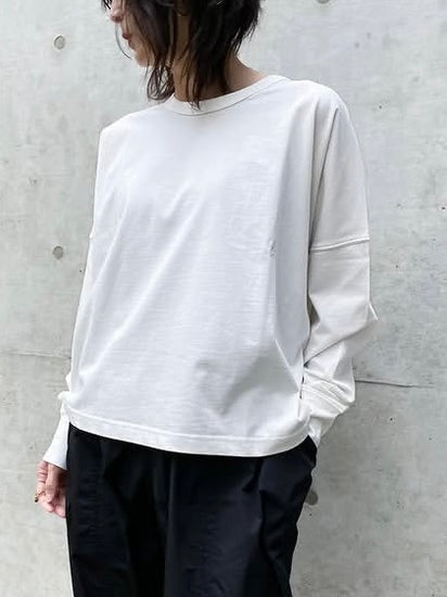 マーセライズド加工をした天竺のロングスリーブTシャツ。ワイドなシルエットが特徴的。