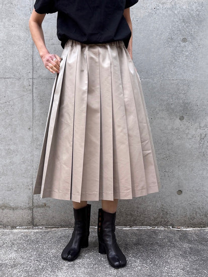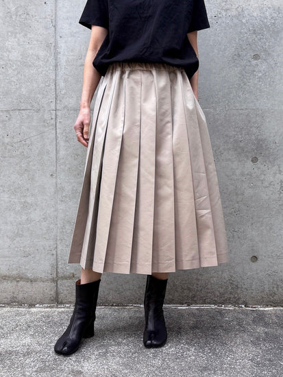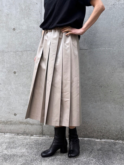 tao / 綿エステルツイル ウエストゴム プリーツスカート / BEIGE / TQ-S012-051