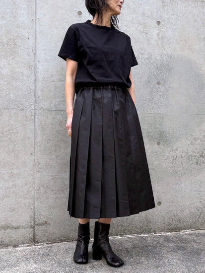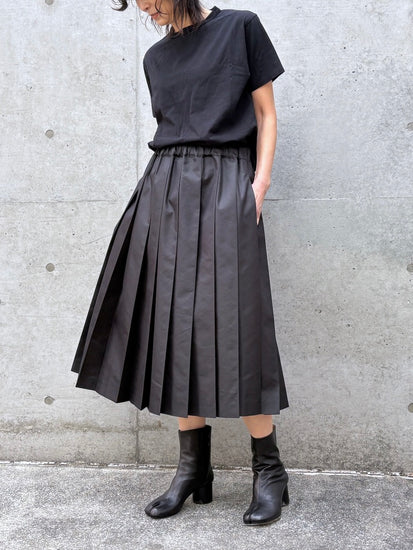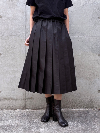 tao / 綿エステルツイル ウエストゴム プリーツスカート / BLACK / TQ-S012-051