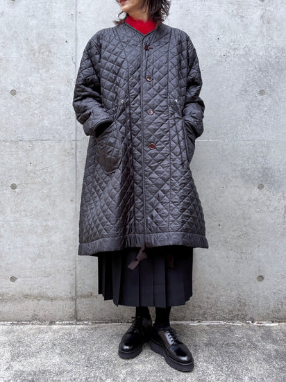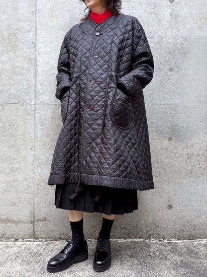 tao / エステルタフタキルティング ノーカラーコート / BLACK / TP-C003-051