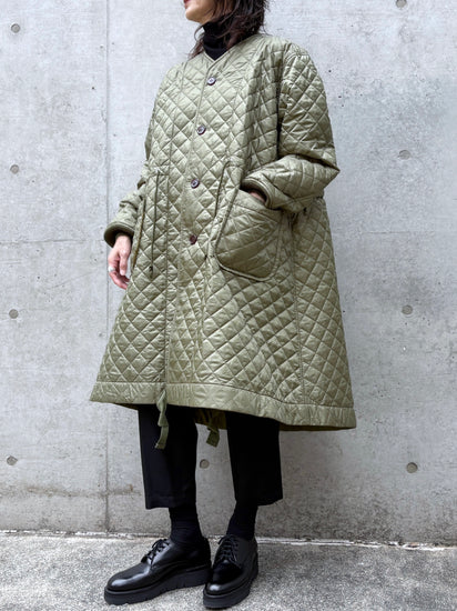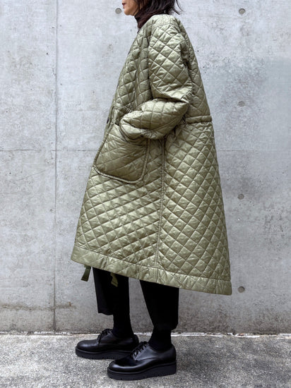 tao / エステルタフタキルティング ノーカラーコート / KHAKI / TP-C003-051