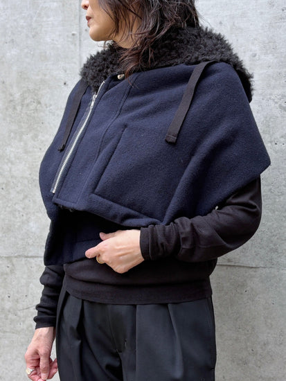 tao / ウールエステルモッサ先染×エステルフェイクファー ケープ / NAVY / TP-J017-051