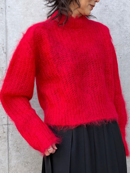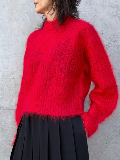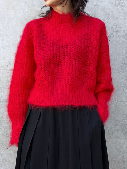 モヘヤとウールのクルーネックニット。