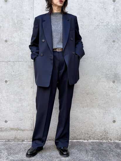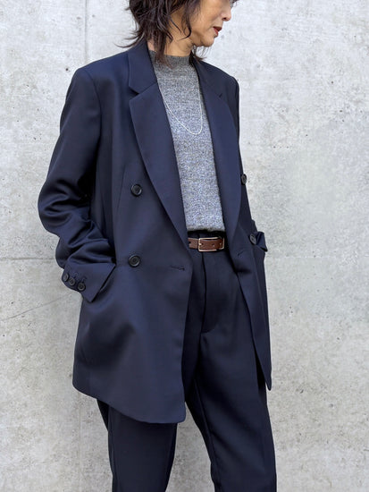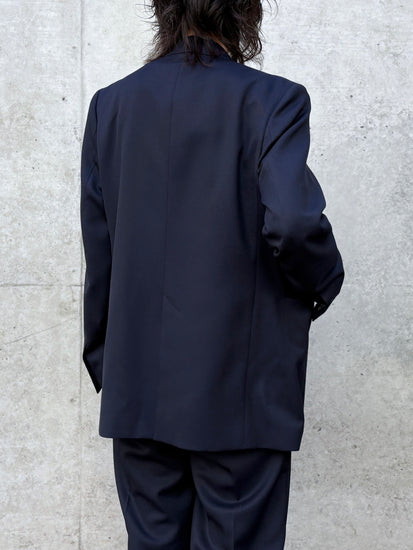 程よい落ち感と張り感を併せ持った、仕立て栄えのする素材です。またシワになりにくいところもポイントです。同素材のパンツとセットアップでの着用もオススメです。