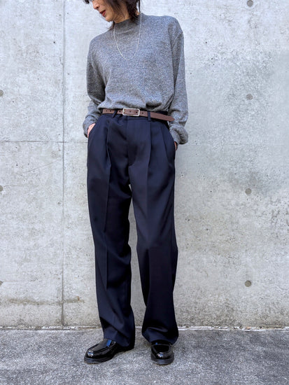 程よい落ち感と張り感を併せ持った、仕立て栄えのする素材です。またシワになりにくいところもポイントです。同素材のジャケットとセットアップでの着用もオススメです。