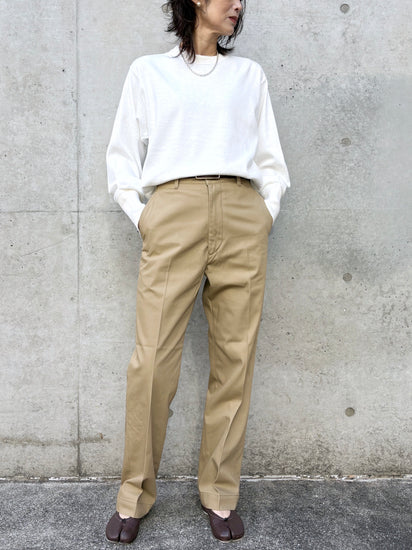 程よい身幅のサイジングで、ボトムインにも最適。裾がラウンドなので、インが苦手な方にもスッキリ着こなして頂けます。